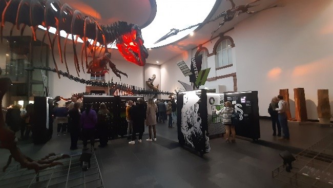 Viele interessierte Besucher nahmen an der Eröffnung der Wanderausstellung „Planet A* - Die Ausstellung für *Artenvielfalt“ im großen Dinosauriersaal des Senckenberg Naturmuseum in Frankfurt teil. Bilder von Marina Roth.