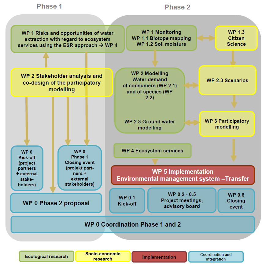 - The natural science methodology will be accompanied by regular round tables with local stakeholders moderated according to the criteria of mediation. During the round tables, attempts will be made to coordinate the options for water and land management in terms of acceptance by the population (e.g. attractiveness of biotopes, recreational potential).